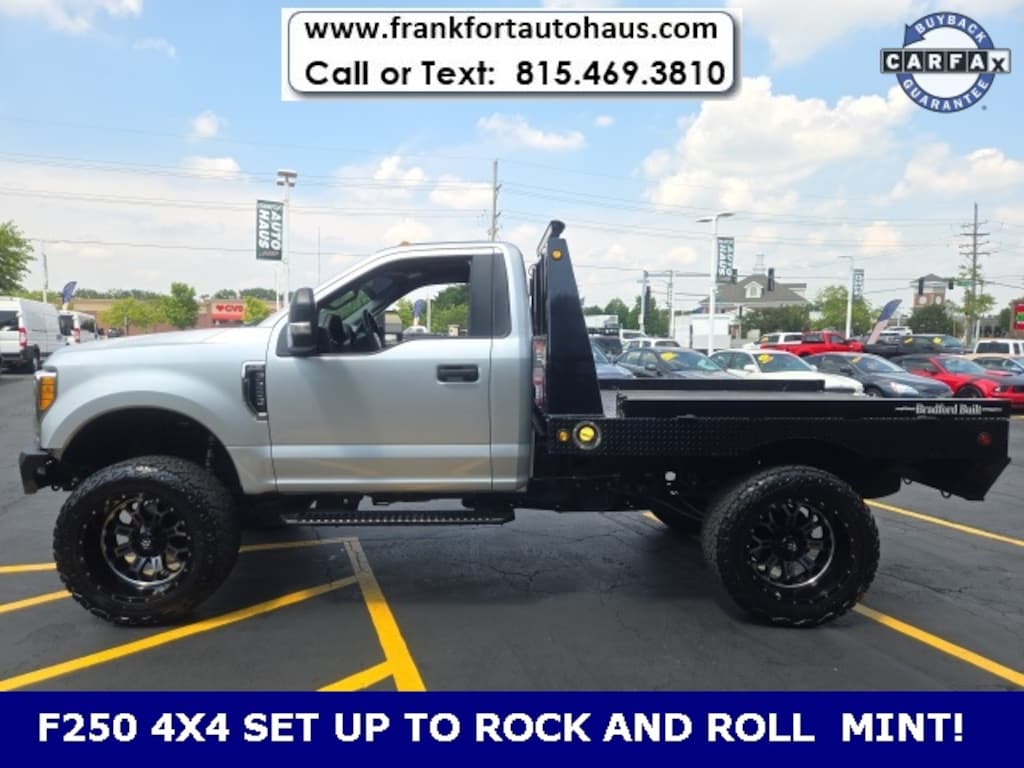2017 Ford F-250SD XLT/ Bradford Built custom Flatbed with goose neck ball setup , Custom Wheels,Expensive Custom front grill with built in winch ,Clean CARFAX. 2D Standard Cab 6.2L V8 EFI SOHC 16V Flex Fuel 4WD Non Smoker, Bluetooth, Back up Camera, Alloy Wheels, Premium Sound System, 4x4/4-wheel drive, Tow Package, 6.2L V8 EFI SOHC 16V Flex Fuel, Cylinder Count: 8, 4WD, 4-Wheel Disc Brakes, 5th Wheel/Gooseneck Hitch Prep Package, ABS brakes, Air Conditioning, Brake assist, Bright Chrome Grille, Bright Chrome Hub Covers & Center Ornaments, Chrome Front Bumper, Chrome Rear Step Bumper, Cloth 40/20/40 Split Bench Seat, Colored Front & Rear Rancho Branded Shocks, Delay-off headlights, Dual front impact airbags, Dual front side impact airbags, Electronic Stability Control, Electronic-Locking w/3.73 Axle Ratio, Front anti-roll bar, Front Center Armrest w/Storage, Front reading lights, Fully automatic headlights, FX4 Off-Road Package, Hill Descent Control, LED Roof Clearance Lights, Low tire pressure warning, Outside temperature display, Overhead airbag, Passenger cancellable airbag, Passenger vanity mirror, Perimeter Alarm, Platform Running Boards, Power Equipment Group, Power Front Seat Windows, Power Locks, Power steering, Power Tailgate Lock, Privacy Glass, Radio: AM/FM Stereo/Single-CD/MP3 Player, Rear step bumper, Rear-View Camera, Remote Keyless Entry, SiriusXM Radio, Steering Wheel-Mounted Cruise Control, STX Appearance Package, SYNC Communications & Entertainment System, Tachometer, Telescoping steering wheel, Tilt steering wheel, Traction control, Trailer Brake Controller, Trailer Tow Mirrors w/Power Heated Glass, Trip computer, Unique FX4 Off-Road Box Decal, Upfitter Switches (6), Variably intermittent wipers, Wheels: 18" Sparkle Silver Painted Cast Aluminum. 2017