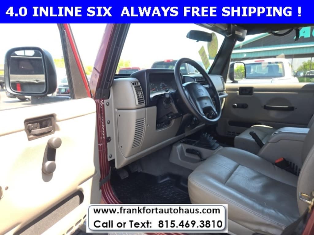 2004 Jeep Wrangler Sport Clean 9( brand new tires and soft top )CARFAX. 2D Sport Utility PowerTech 4.0L I6 4WD Recent Trade, Non Smoker, Bluetooth, Alloy Wheels, 4x4/4-wheel drive, Tow Package, Wrangler Sport, 2D Sport Utility, PowerTech 4.0L I6, 5-Speed Manual HD, 4WD, Sienna Pearlcoat/Black Soft Top, Khaki Vinyl, 15" x 8" Forged Aluminum Wheels, 3.07 Axle Ratio, 4 Speakers, AM/FM Compact Disc w/Changer Control, AM/FM radio, CD player, Driver door bin, Dual front impact airbags, Fixed Antenna, Front anti-roll bar, Integrated roll-over protection, Passenger door bin, Power steering, Quick Order Package 25X, Rear anti-roll bar, Tachometer, Tilt steering wheel, Variably intermittent wipers, Vinyl High-Back Bucket Seats, Voltmeter. 2004